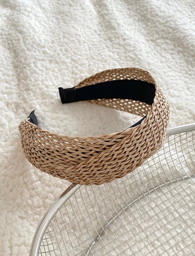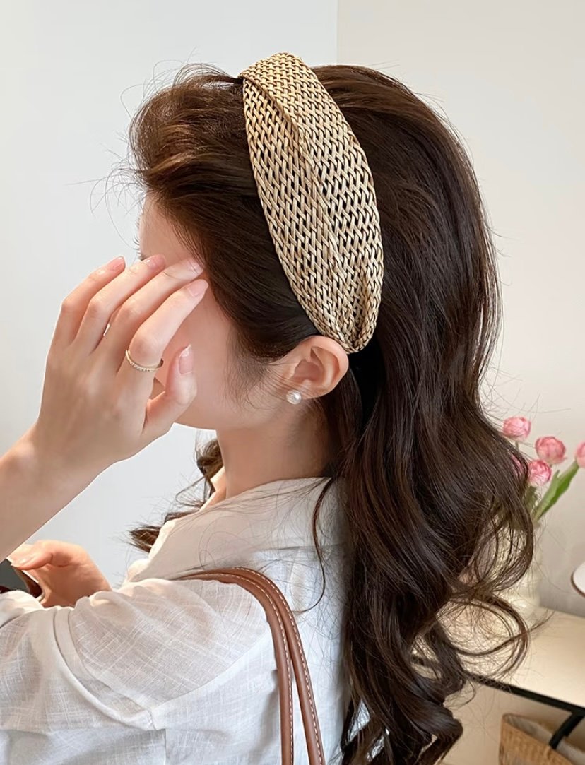Straw-woven wide Hair Bands versatile temperament solid color headband hair accessories