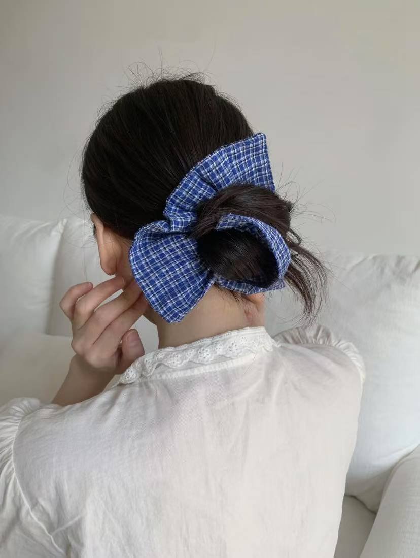Blue plaid atmosphere square large hair scrunchies