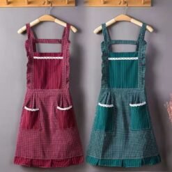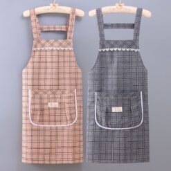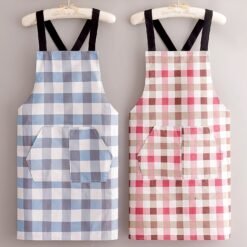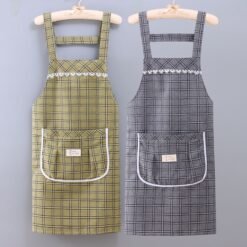 2PC Stylish plaid apron for home cooking, oil-proof, stain-resistant, and breathable