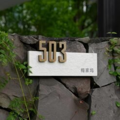 Customized door numbers | Stainless steel door numbers + natural beige marble – suitable for residential and commercial real estate
