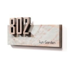 Custom house number | Stainless steel number + natural marble milky white – suitable for residential and commercial real estate