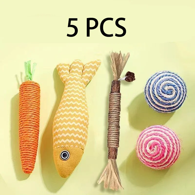 5 PCS Cat Toys Teething Sticks Cat Sisal Balls Chewable Relief Artifact Kitten Supplies