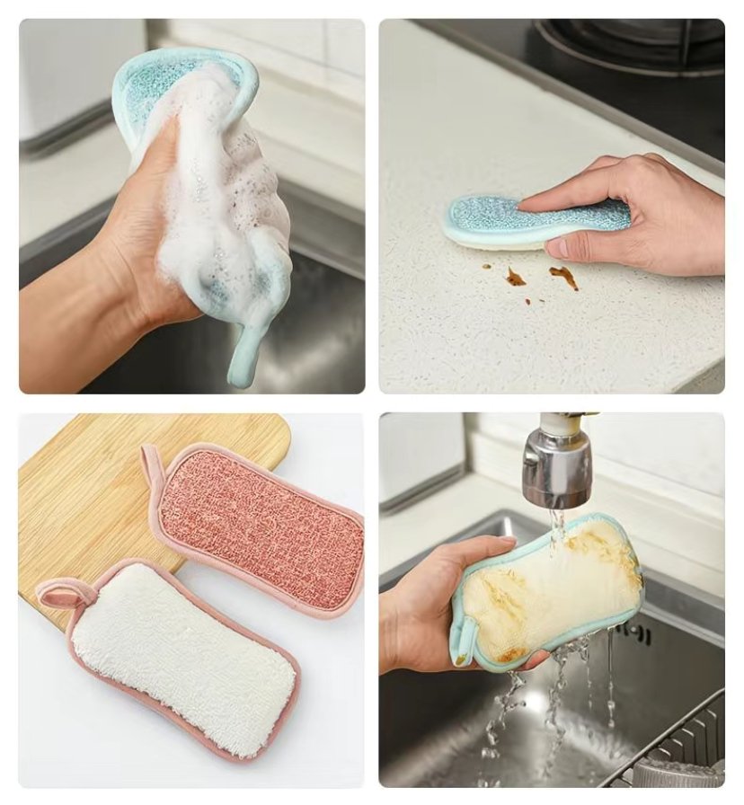 Dishwashing sponge artifact kitchen dishwashing cloth non-stick oil household rag scouring pad