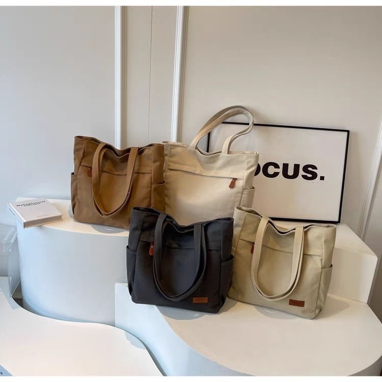 Canvas zippered shoulder bag, large capacity, casual and versatile, perfect for students