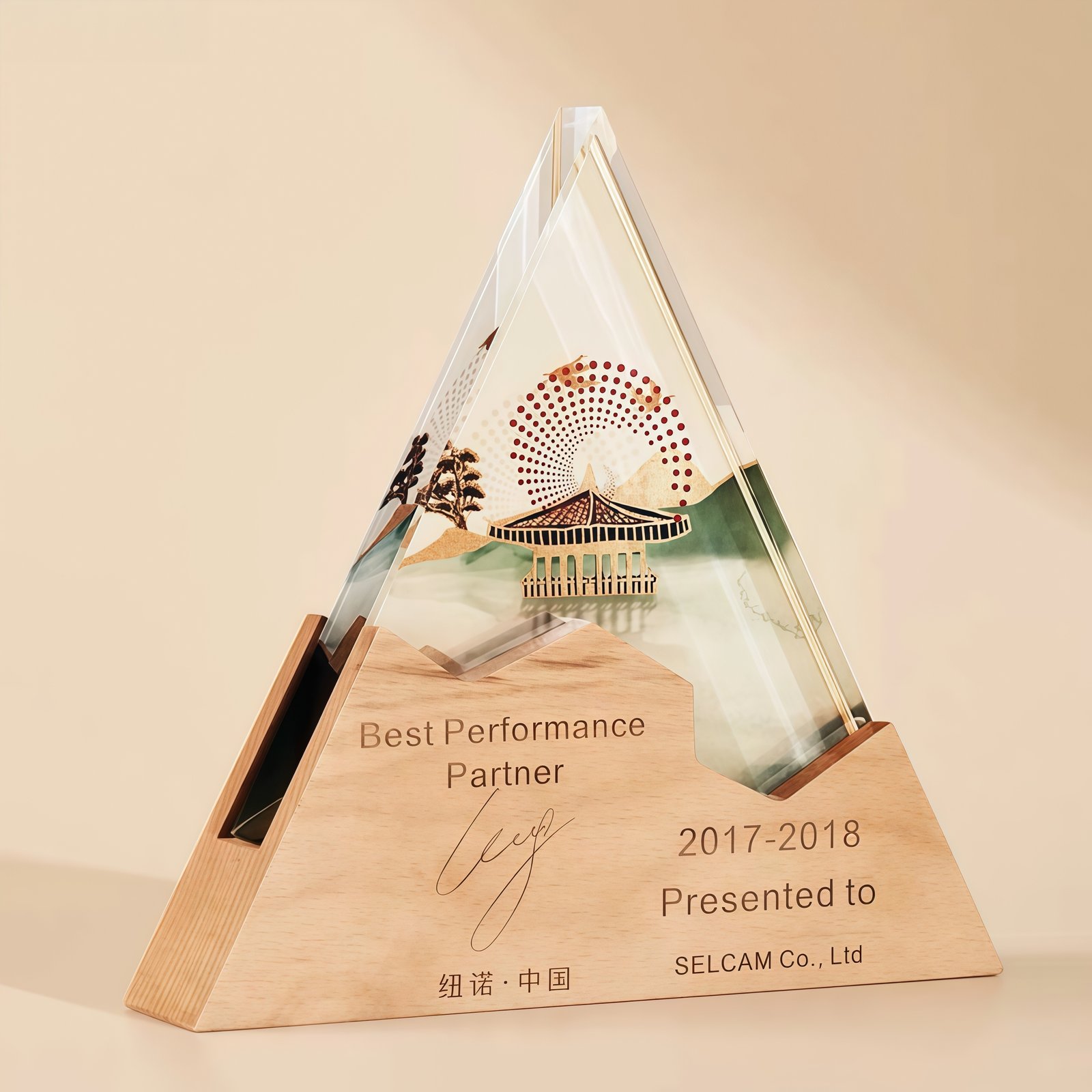 Custom-made triangular trophies, suitable for annual award ceremonies and school award ceremonies