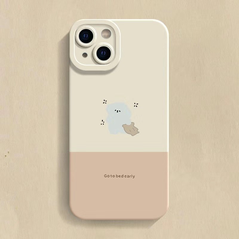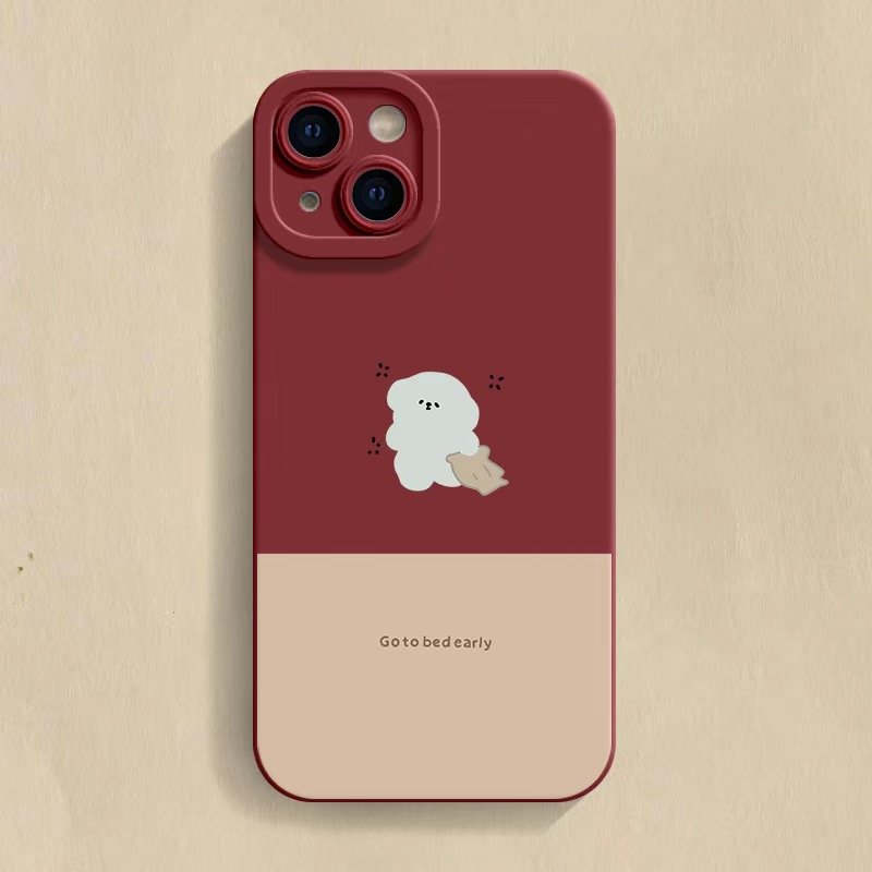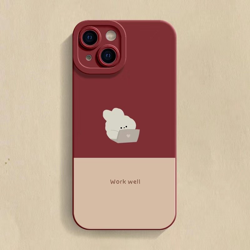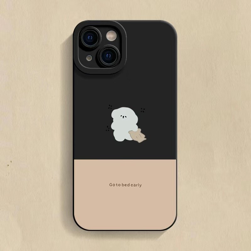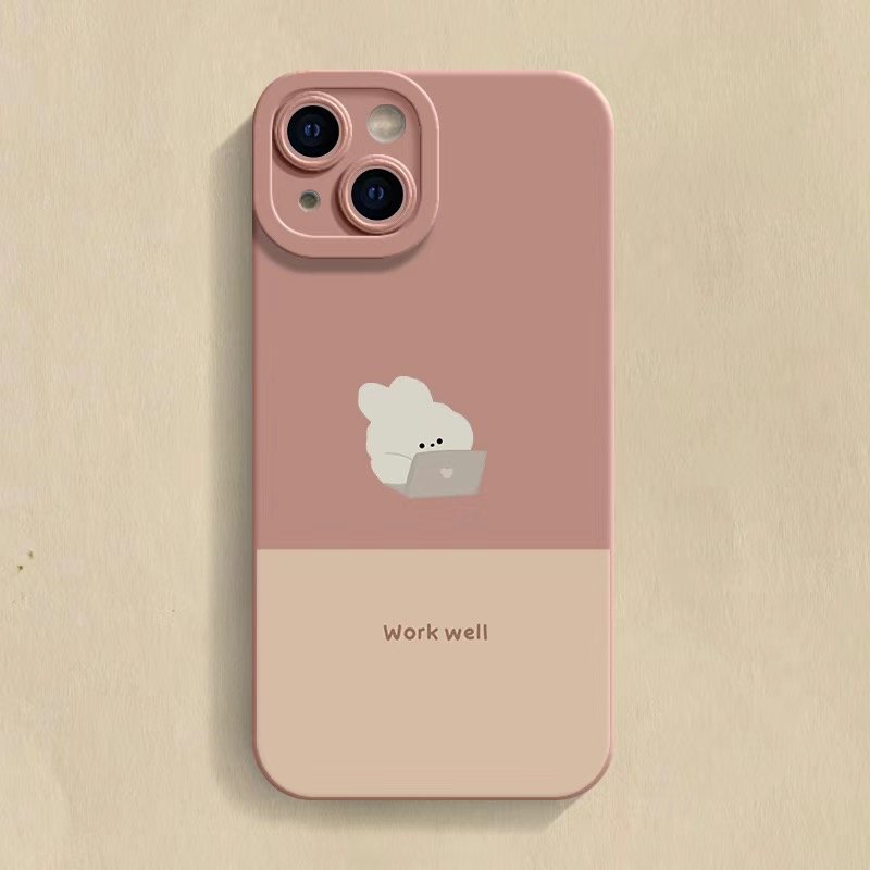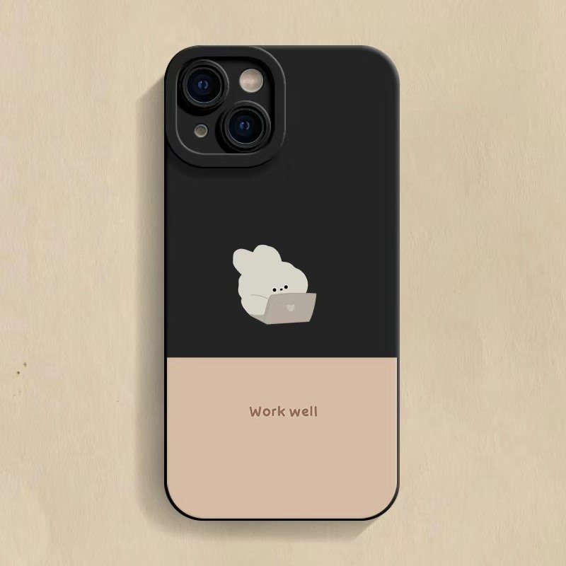 Cute little white dog and hard-working rabbit, iPhone16 case, youthful and simple, anti-fall and good-looking