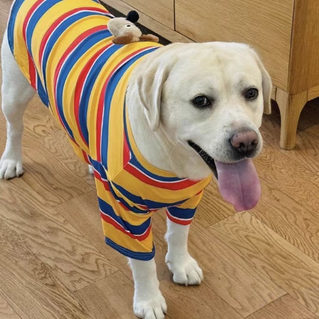 Dog Clothes Striped Shirt Cute Plush Puppy Sporty Cool Round Neck Shirt for Labrador Golden Retriever Medium and Large Dogs