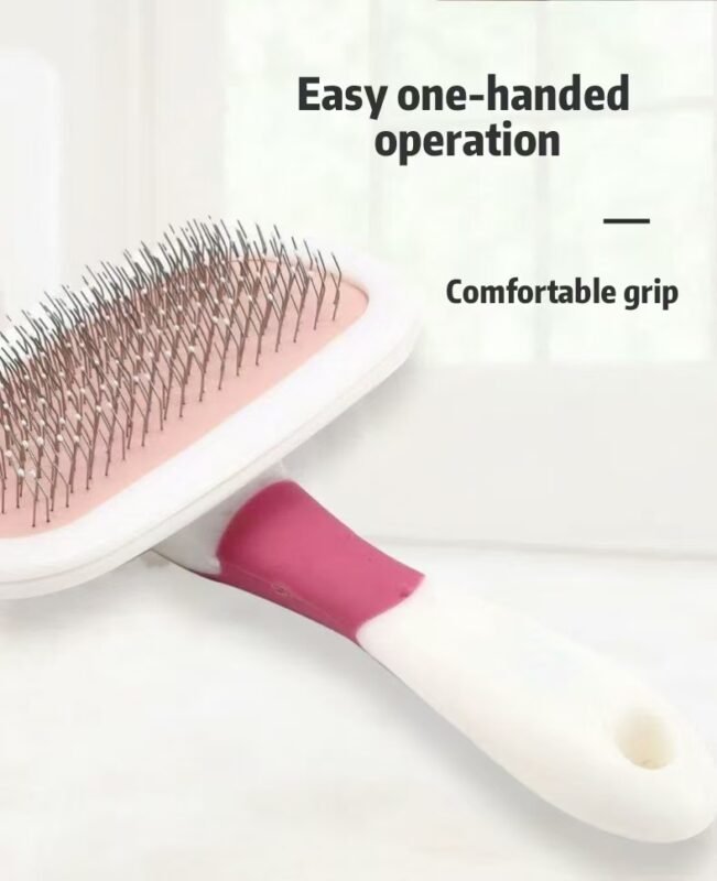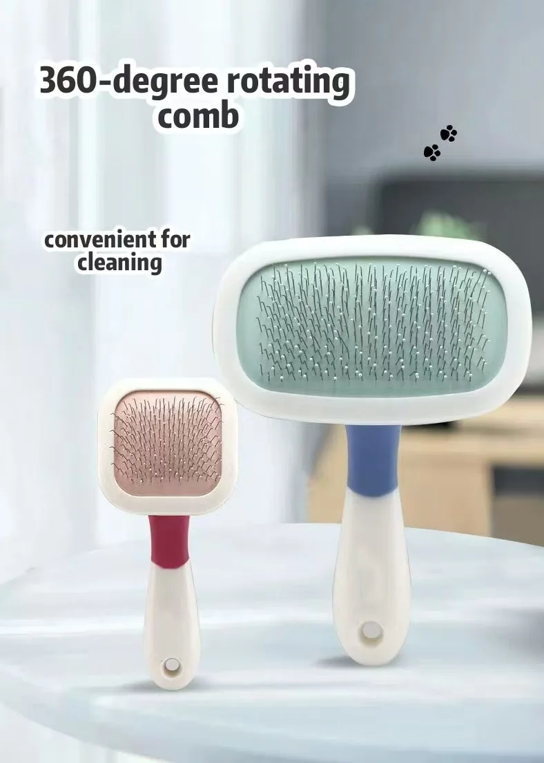 This 360° rotating pet comb is designed specifically for pet grooming. Its teeth, designed with special adhesive beads, conform to your pet’s skin, effectively grabbing loose hair and effortlessly detangling it, while also being gentle on delicate skin. It also provides massage, soothing itching, and removing dead hair. The comb rotates 360° for easy styling and combing. The ergonomic handle allows for comfortable one-handed operation. Available in pink (large), small, and blue (large), the comb is made of plastic with steel needles for easy cleaning. Its elastic teeth resist breaking and are easy to store, making it a perfect companion for pet owners.