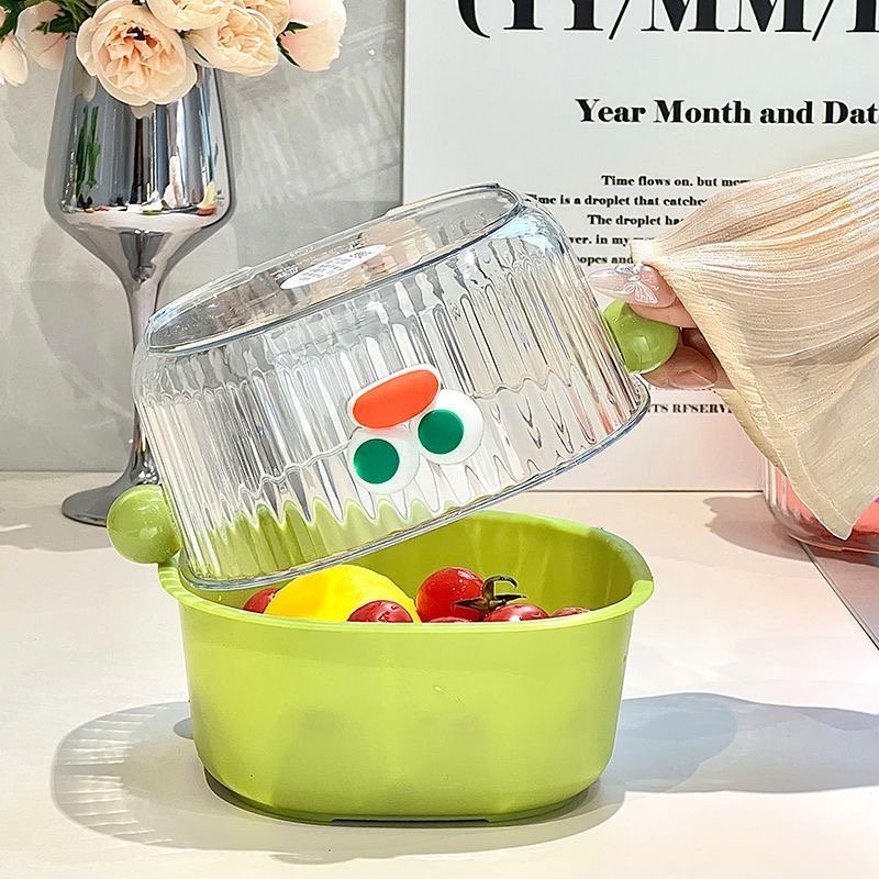 Drain basket double-layer fruit drain basket new vegetable kitchen thickened basket cleaning two-in-one vegetable basket