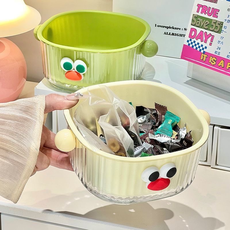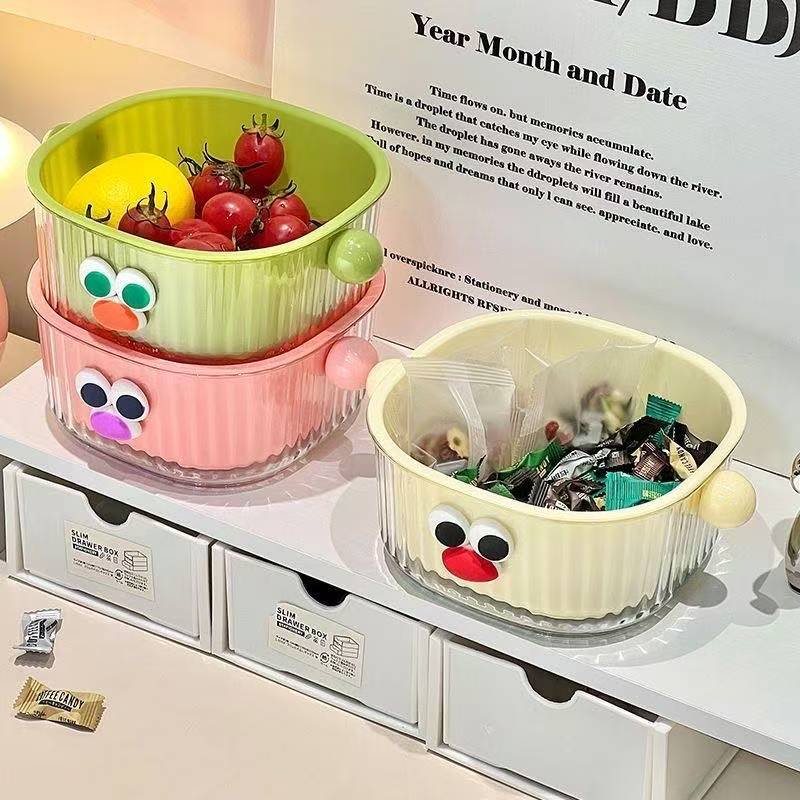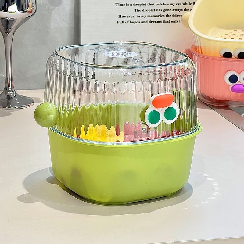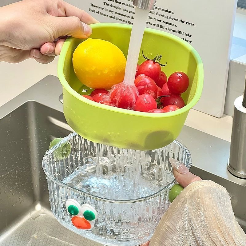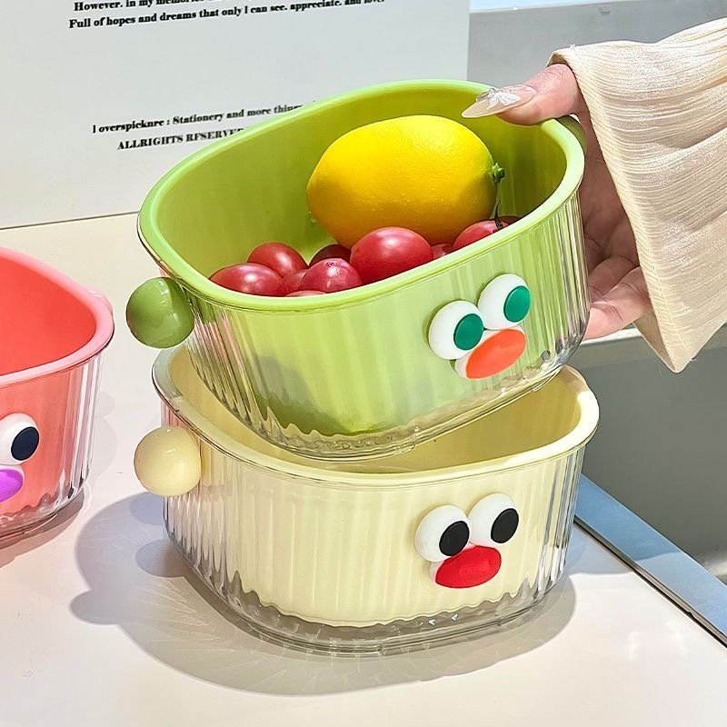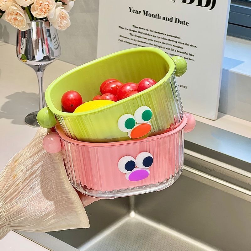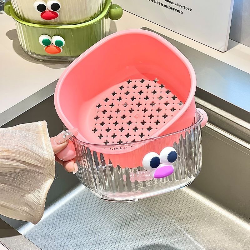 In terms of appearance, the eye – catching 3D big eyes plus the playful color scheme can instantly liven up the kitchen space once placed, making the cooking mood cheerful. The double – layer design is super considerate: the upper drain basket filters water flexibly, ideal for washing fruits and filtering vegetable residues; the lower water – receiving tray catches water drops steadily, keeping the countertop dry and making cleaning a breeze.