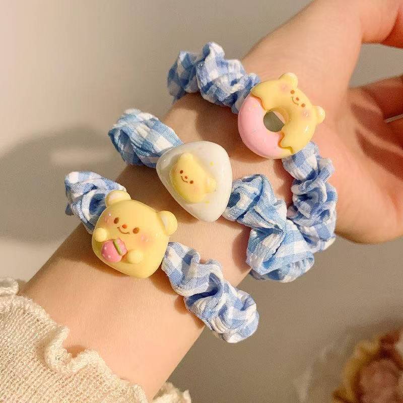 Each little bear on the scrunchies has its own charm✨ Some hold donuts, some carry small cakes, and there’s even one “disguised” as a poached egg. It feels like they’ll hop over to share sweetness with you in the next second. Gently tie up your hair, and you’ll instantly switch from “casual” to “sweet – girl vibe”. They’re cute for ponytails and gentle for updos. Even a random tie looks like a carefully – designed cute trick🎀