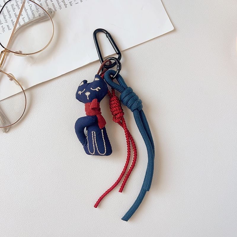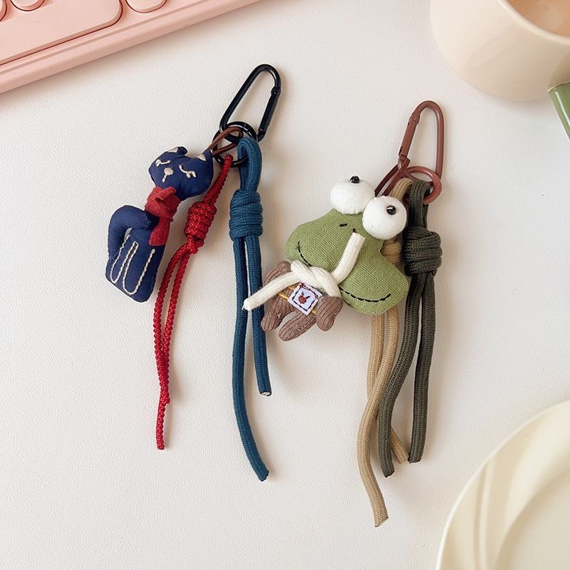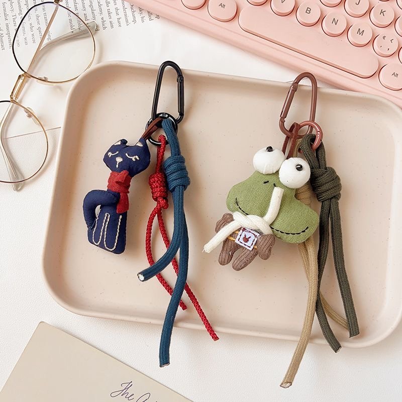 Handmade fabric cat and frog shaped decorations, cute cartoon keychains/bag charms/phone chains