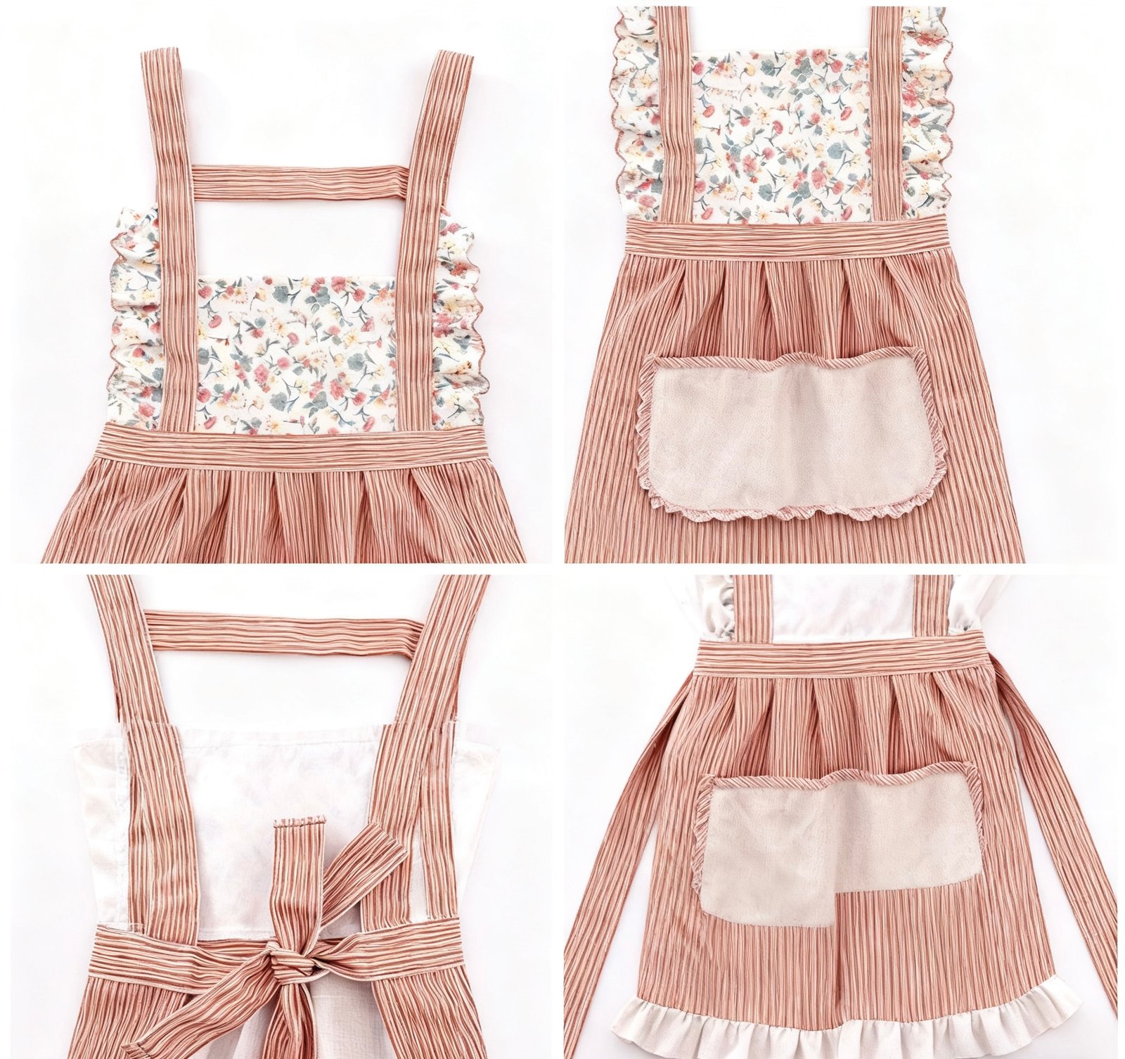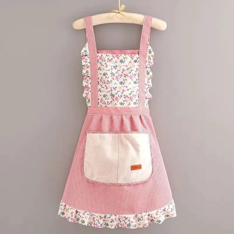 2PC This princess-themed apron is made of cotton fabric, making it comfortable, breathable, and stylish