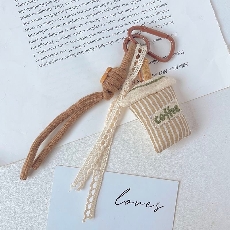 New handmade fabric coffee cup shaped decorations, cute cartoon keychains/bag charms/phone chains