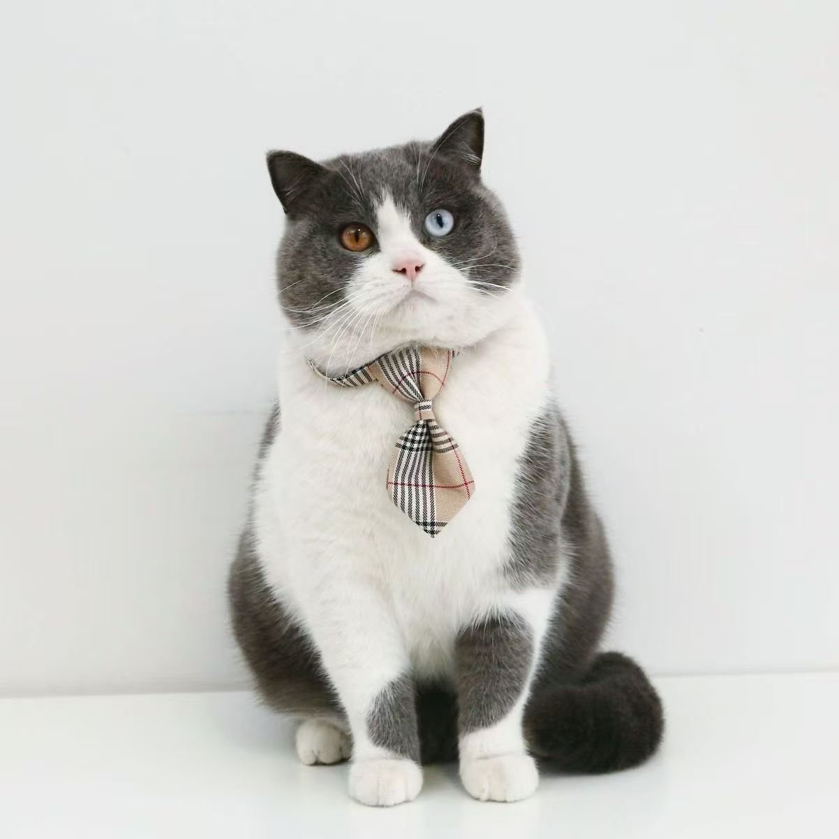 This is a tie designed specifically for pets, available in a variety of patterns, including black plaid, pink-brown plaid, and khaki. Its refined design and adjustable collar allow it to fit any pet’s neck. The collar buckle features adorable elements like a cat, making it both practical and endearing. This tie instantly transforms your pet into a fashion icon, showcasing their unique charm for everyday cute moments and special occasions, adding a touch of fun and sophistication to your pet’s life.
