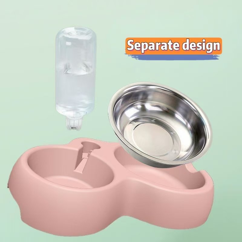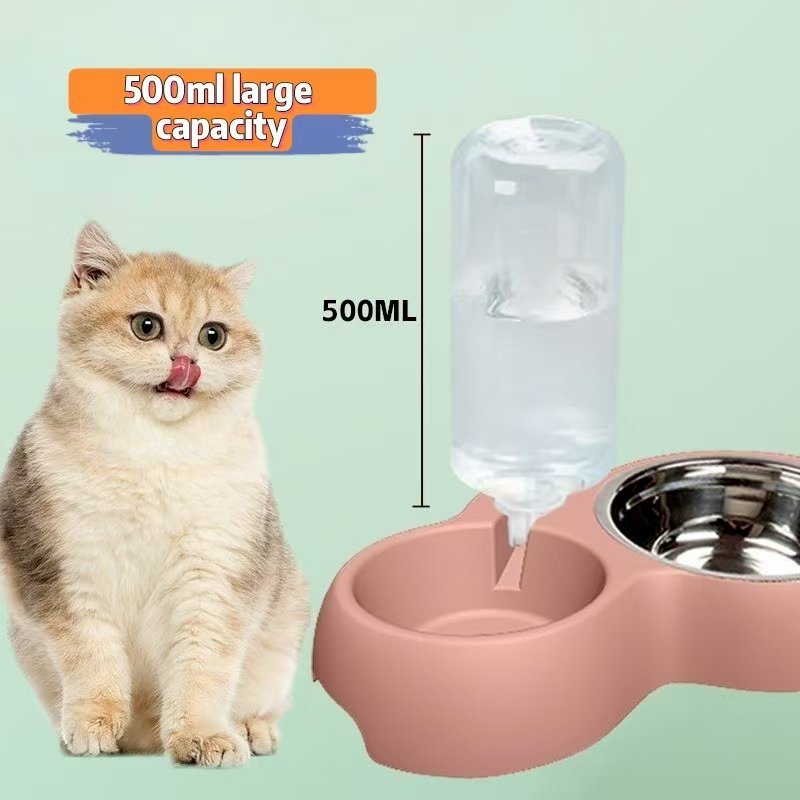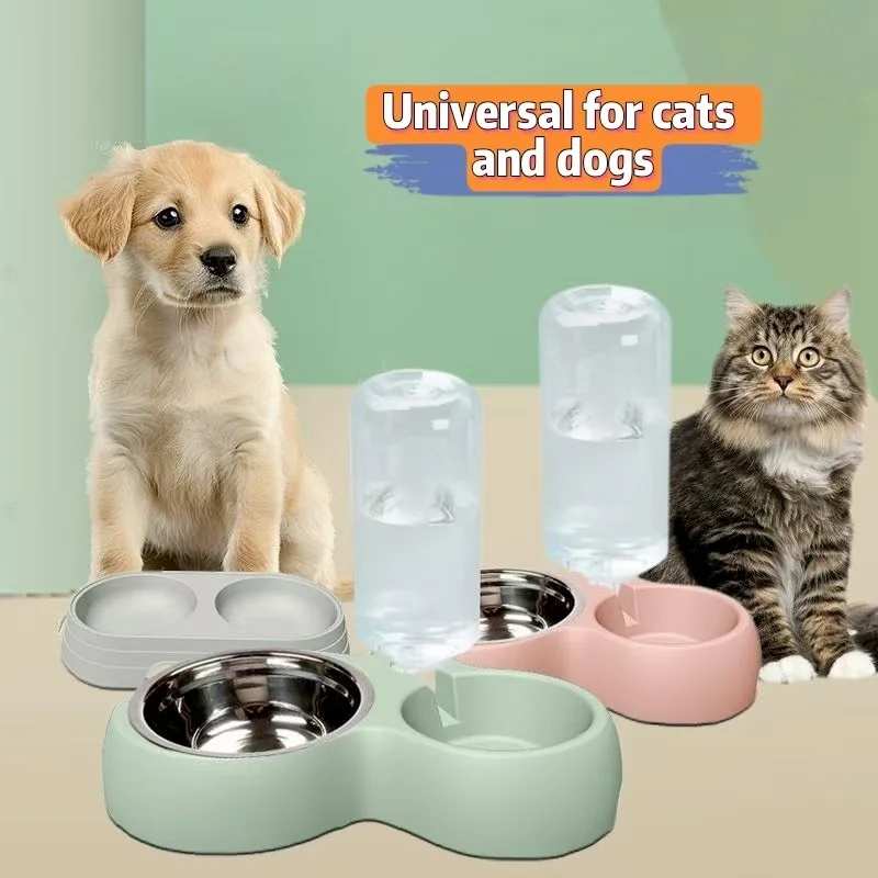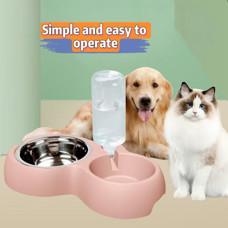 Pet supplies double bowl automatic drinking water integrated pet food bowl pet dog rice bowl stainless steel cat rice bowl