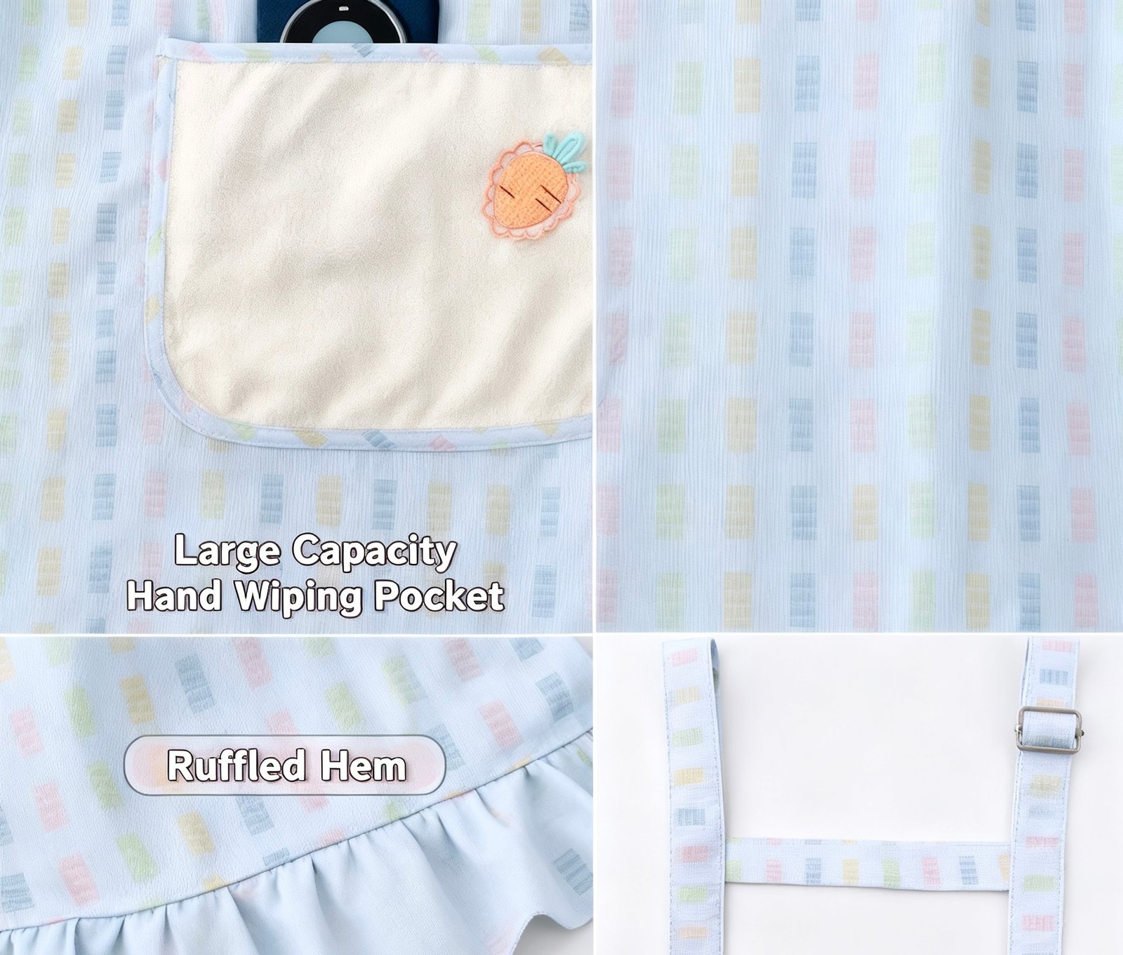 2PC Stylish plaid apron for home cooking, oil-proof, stain-resistant, and breathable