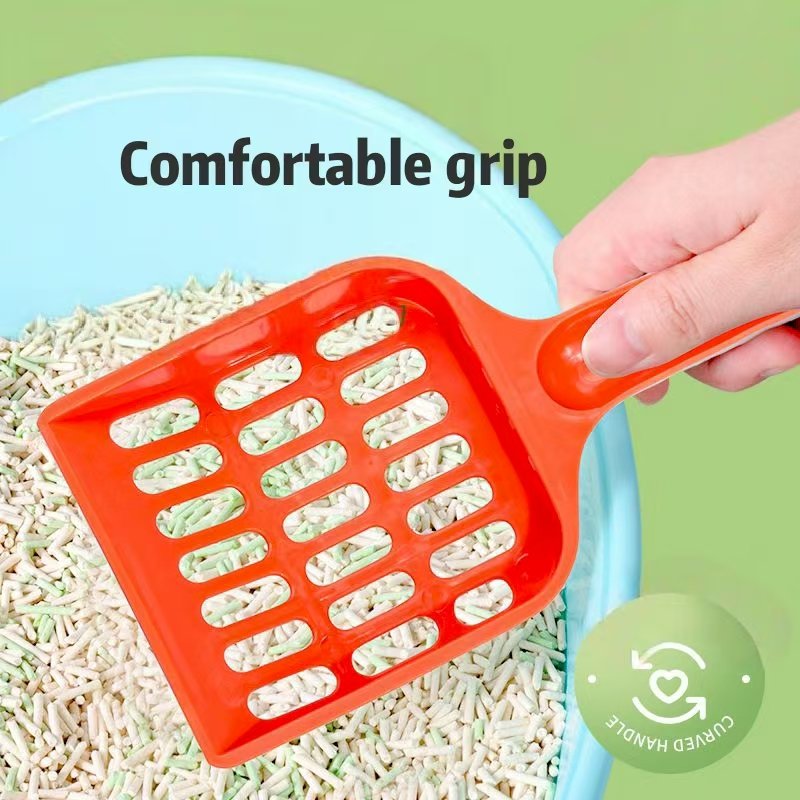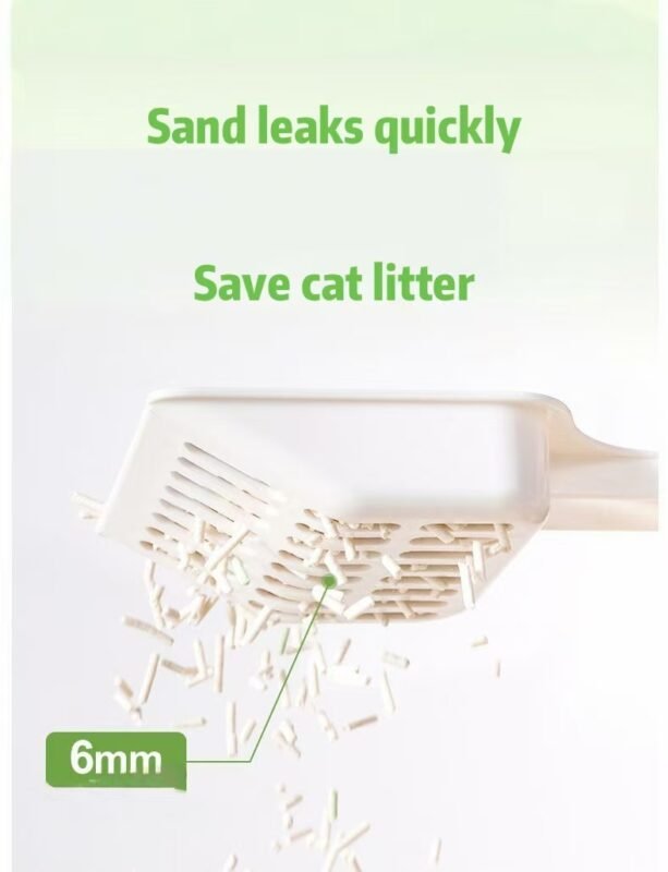 This is a PP cat litter scoop, measuring 22.4*9.6cm, with a 0.6cm hole spacing. It’s available in a variety of colors and shipped randomly. The curved handle fits snugly in your palm, providing a comfortable and effortless grip, and is ergonomically designed. The curved scoop surface removes all clumps of poop at once, significantly reducing shoveling time. The carefully designed hole spacing allows for quick removal of litter, shaking off clumps of all sizes and effectively conserving litter. It’s non-sticky, making scooping effortless, and comes with a hook for convenient storage. The minimalist design combines practicality and aesthetics, making it an excellent addition to your litter scoop.