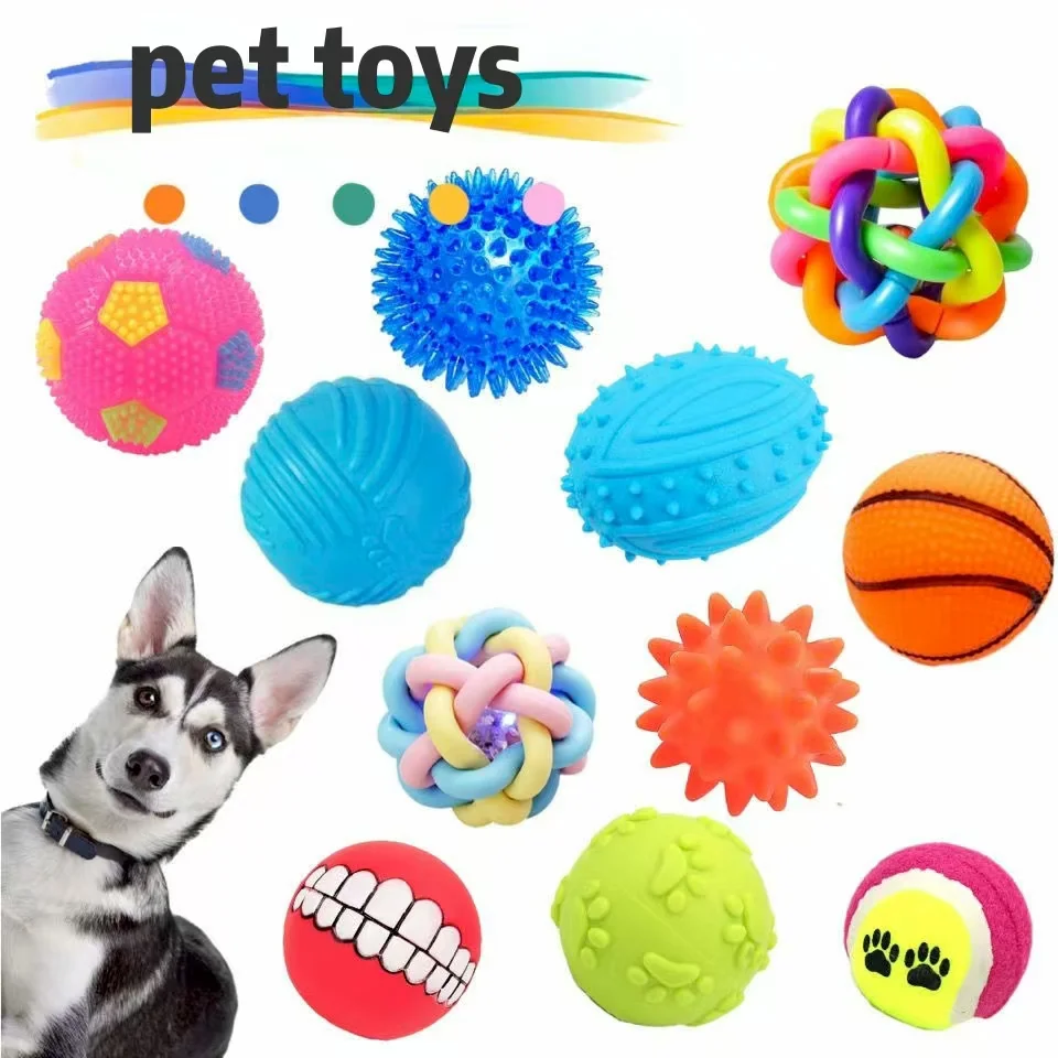 Random 3 dog ball toys pet round sound ball puzzle dog toy training ball molar sound elastic ball