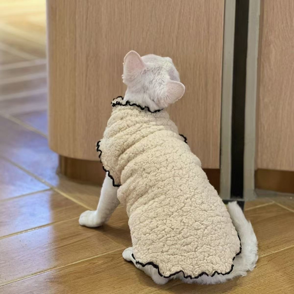 Winter pet clothing with double-sided fleece lining, suitable for cats.
